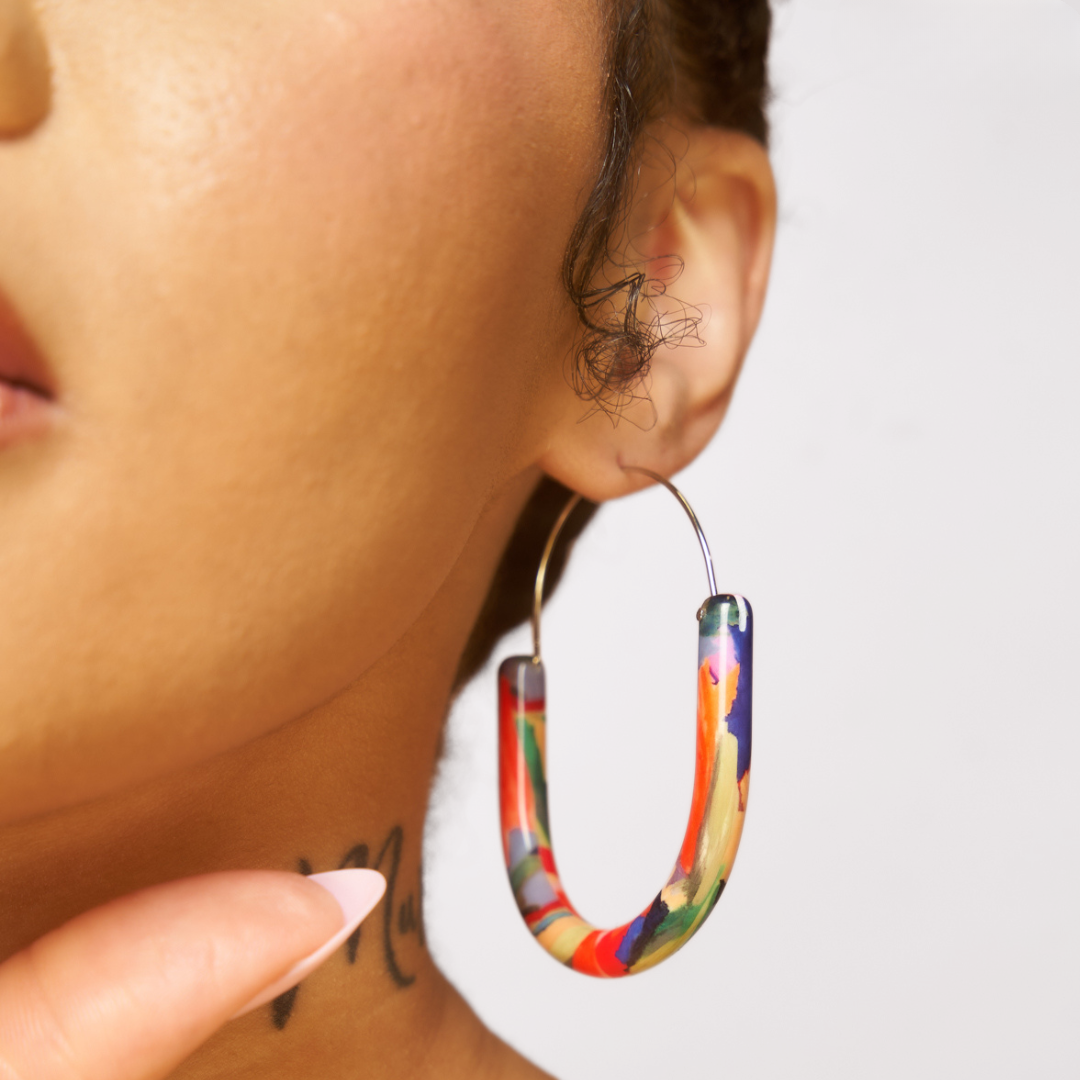 Be a trendsetter with these Art District Hoops! These hoops are sure to add a touch of fun to any outfit.