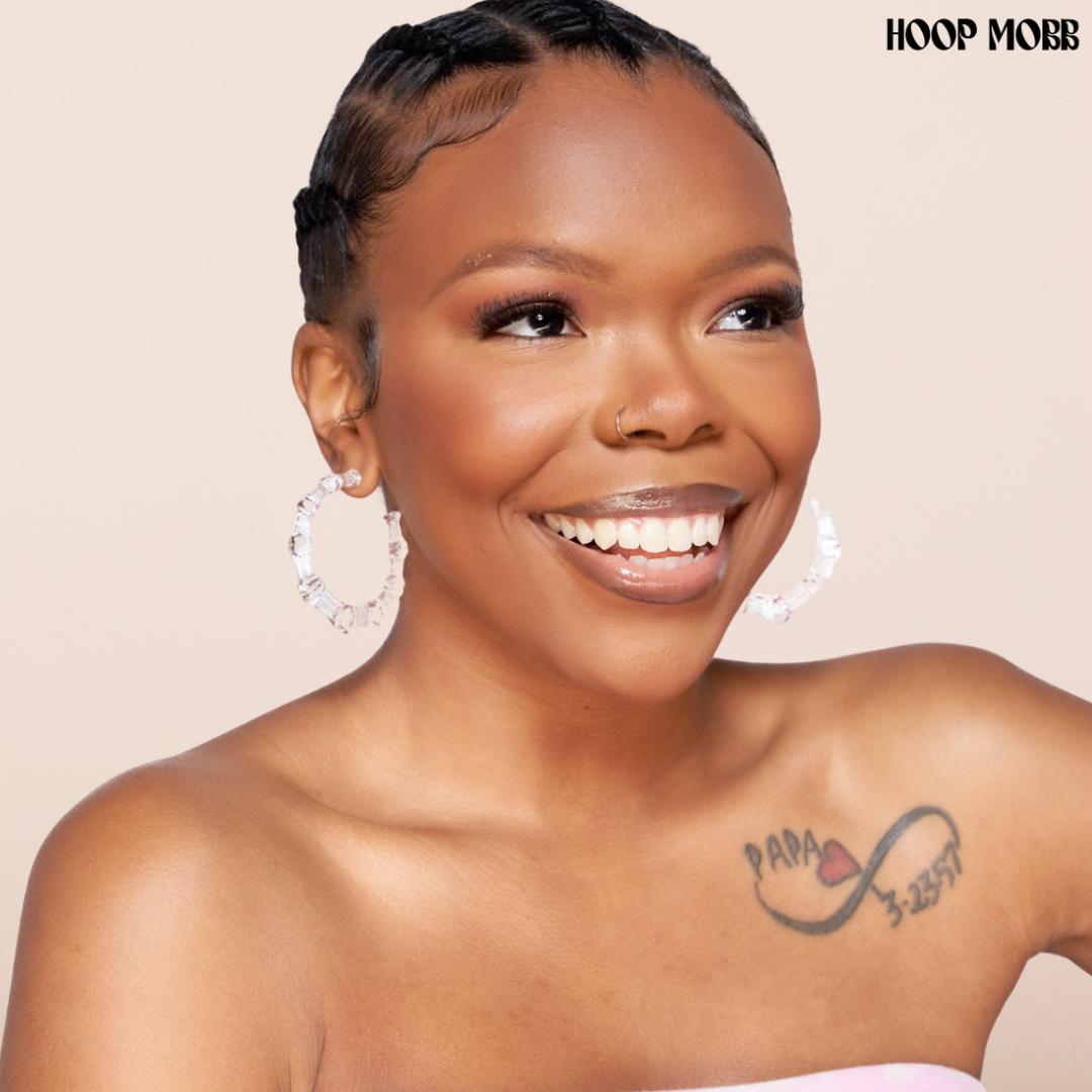 Wipe clean with a dry cloth and store back in your Hoop Mobb pouch after each wear to maintain your hoops. Water, oil and makeup can cause fading and discoloration.