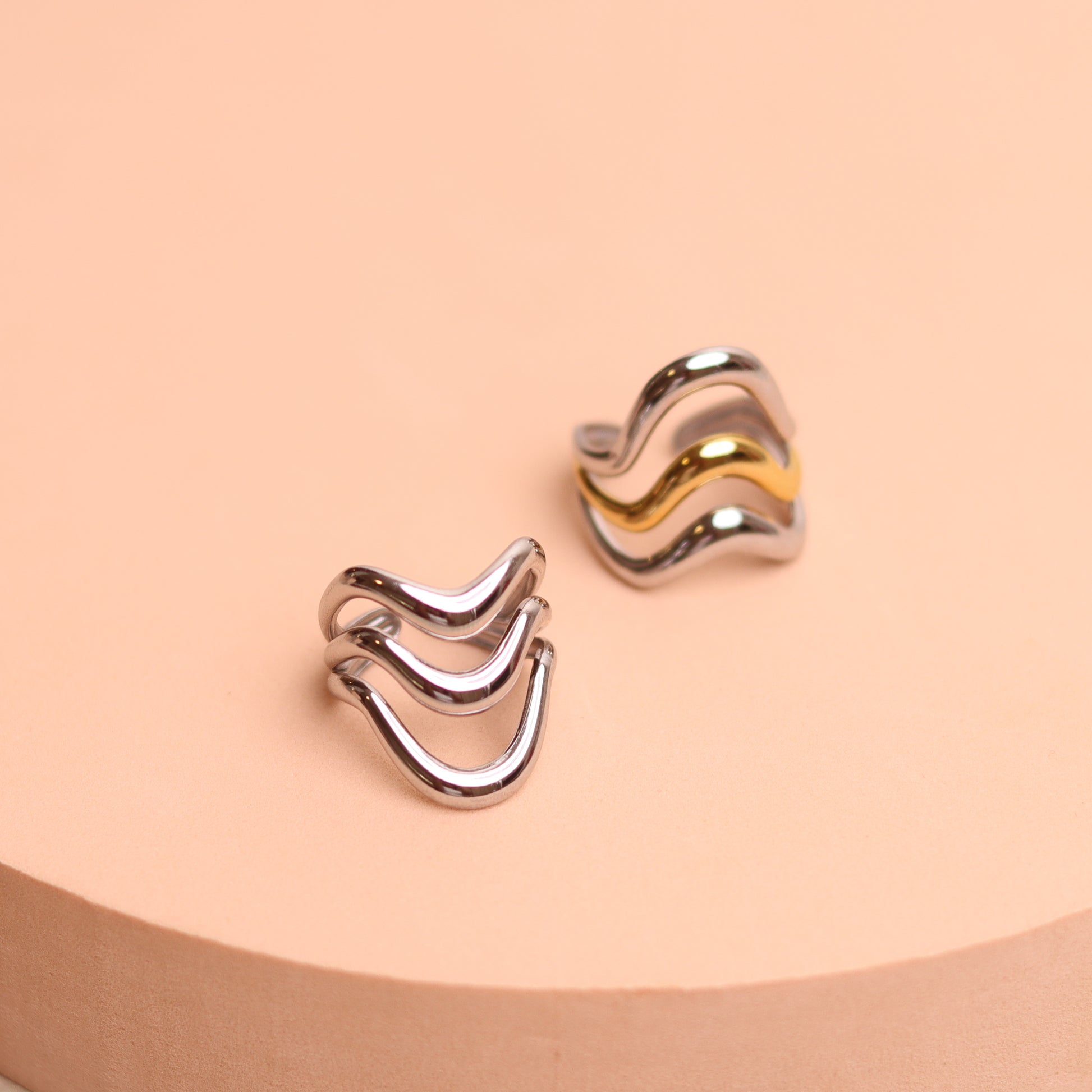 The Power Play Ring Set is bold, sculptural, and made to make a statement. Each ring features unique wavy shapes that feel artsy and powerful — just like you. Stack them all together for a full glam moment or wear one at a time for a softer look.